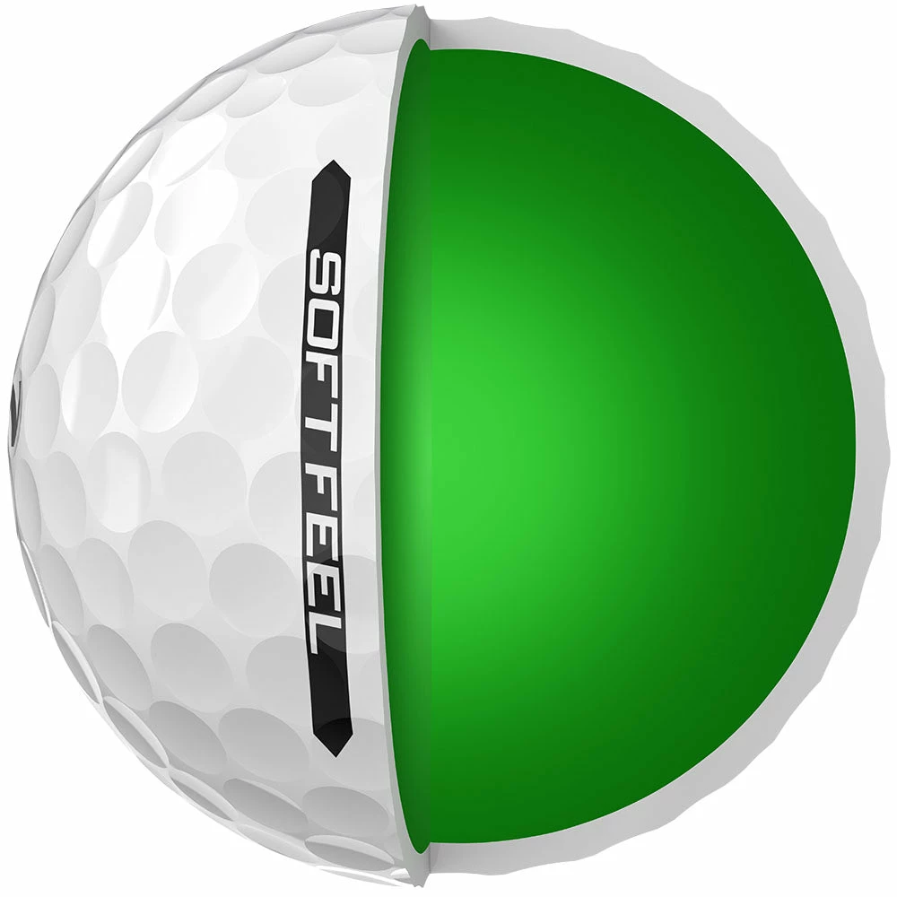 Get a solid yet comfortable impact with every swing with the Soft Feel golf ball from Srixon, that has a soft centre that gradual transitions to a firm outer edge for incredible softness without sacrificing distance.